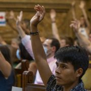 Las y los asambleístas trabajaron en grupos de trabajo por “áreas de vida y sociedad”. Los grupos creados fueron: