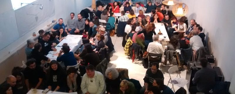 Ecooo, como tantas otras veces, puso a disposición del común su amplio y acogedor local de Lavapiés. Casi no entrábamos. La Comisión de Balance Social abrió la asamblea con una dinámica participativa, el world café, para pensar colectívamente, mientras tomábamos café de comercio justo y un bizcocho artesanal, cómo mejorar una de las herramientas fundamentales de la economía social y solidaria. Muchas ideas y propuestas salieron de las tres mesas. Por ejemplo, organizar encuentros con más frecuencia para que las entidades que tienen mejor puntuación en su balance social compartan su buen hacer: ¿qué estrategias de conciliación tienen? ¿cómo gestionan los conflictos? ¿cómo consiguen disminuir su huella ecológica? O ¿qué estrategias de intercooperación han puesto en marcha?