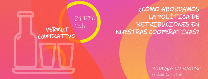¿Cómo abordamos la política de retribuciones en nuestras cooperativas? A través esta pregunta, proponemos la primera edición del Vermut Cooperativo el próximo 21 de diciembre a las 12 horas en Bodegas Lo Máximo (Calle San Carlos 6, Madrid), con el objetivo de reunir al sector del cooperativismo madrileño y debatir sobre cuáles son las líneas en materia de retribuciones que existen y a qué planteamientos se ha llegado desde diferentes entidades. Un buen momento para juntarnos, tomar algo y reflexionar en estas fechas navideñas.