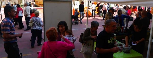 Además de charlas en formato digerible, la Feria de economía solidaria aragonesa contó con actividades lúdicas. El cuentacuentos musical que organizó Pandora Mirabilia para dar a conocer Un Cuento Propio llenó el patio del Centro Comunitario Luis Buñuel, un espacio de lujo reconquistado por vecinas y vecinos. Más de un centenar de personas, niñas y niños y también personas adultas con interés en la educación no sexista, bailaron al son de la banda sonora del cuento sobre el movimiento de mujeres hindú Chipko.